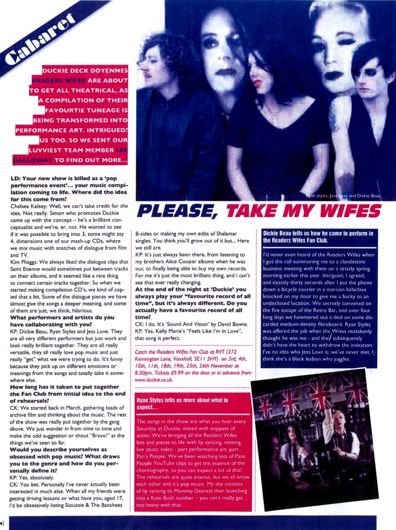 | | | 30 October 2010PLEASE, TAKE MY WIFESLee Daloway: QX Magazine Hotline: +44 (0)20 7737 4043 info@duckie.co.uk Stay connected with Duckie: Join Duckie's A-list.